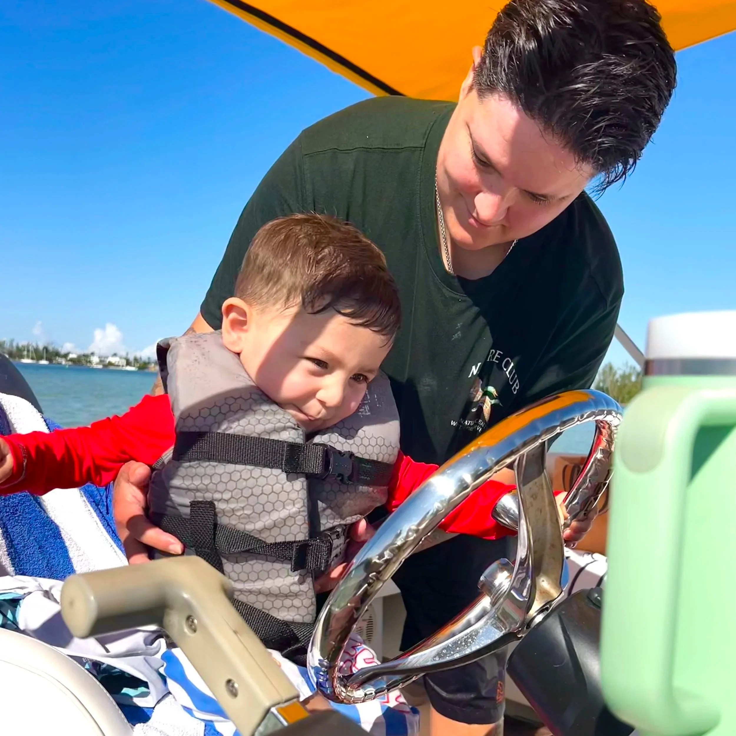 Mama and baby dolphin visit us at the sandbar!